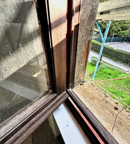 Il progetto consiste in alcuni interventi discreti che non modificano la forma e le dimensioni dell’edificio, ma migliorano la sua efficienza e il suo aspetto esterno. I vecchi infissi in legno verranno sostituiti con nuovi serramenti in PVC che imitano il legno, e saranno accompagnati da persiane in alluminio di colore verde salvia e da un portoncino blindato che si coordina con gli altri elementi. Le cornici e le soglie in travertino verranno rimosse o sostituite con elementi in pietra diorite.