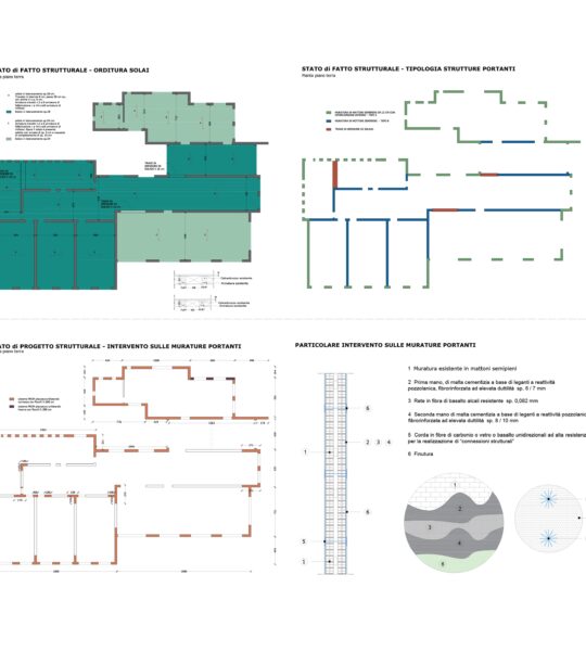 Le opere principali consistono in interventi di rinforzo e consolidamento delle strutture portanti, finalizzati al miglioramento del comportamento statico dell’immobile. Tali interventi sono studiati per rispondere alle normative tecniche vigenti e garantire una maggiore protezione per gli utenti dell’edificio.